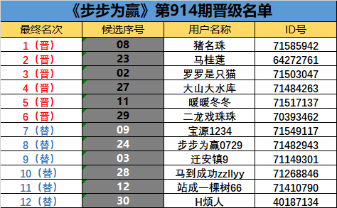 根据2025年11月27日中国福利彩票“双色球”玩法第25137奖结果,《步步为赢》第914期晋级名单已经产生。