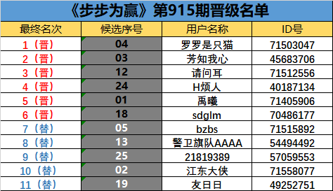 根据2025年12月4日中国福利彩票“双色球”玩法第25140奖结果,《步步为赢》第915期晋级名单已经产生。