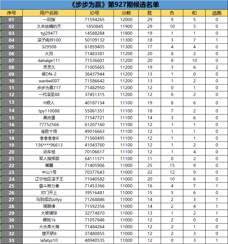 《步步为赢》第927期候选名单公布