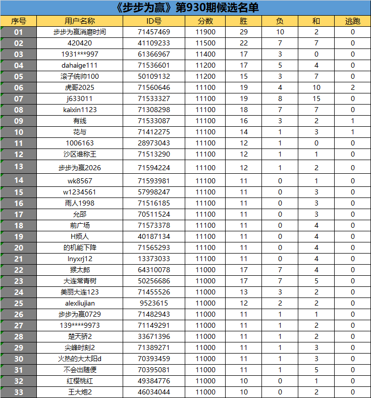 经过一周的激烈角逐,《步步为赢》第930期网络海选的33名候选选手已经揭晓。
