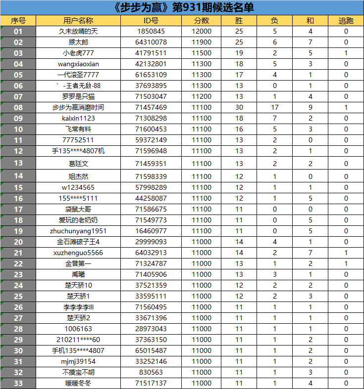 《步步为赢》第931期候选名单公布
